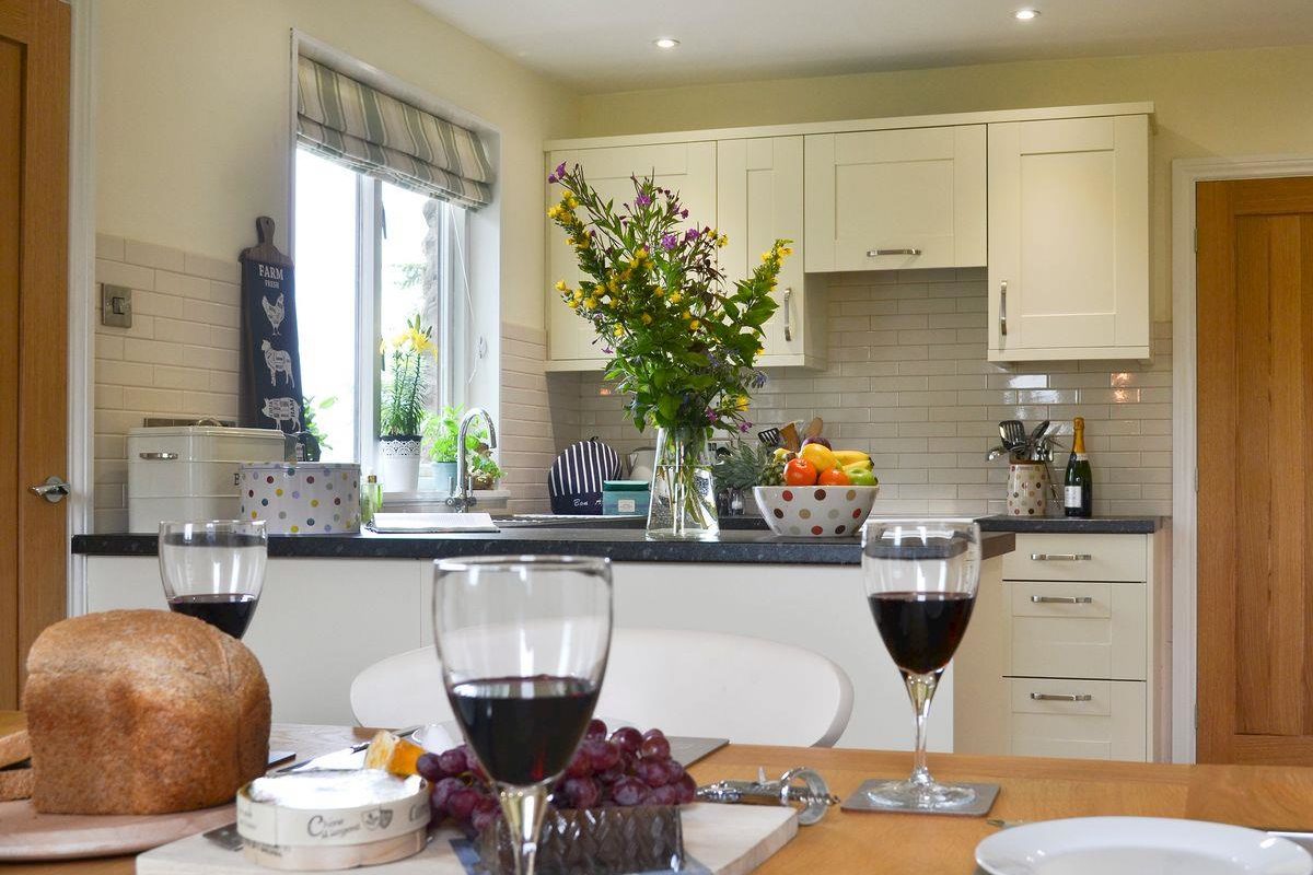 All on one level, guests will find a well presented living room with a wood burner and wooden floor. The kitchen and dining room are open plan and offer contemporary, good quality fixtures, fittings and appliances, as well as a great view from the kitchen sink!